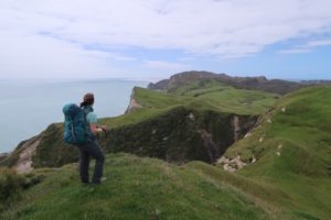 Am naechsten Tag (Mi, 21.12.) wird wieder der Rucksack gepackt – auf zum Hilltop Track, der vom Wharariki Beach entlang der Klippen bis zum Pillar Point mit einem Leuchtturm fuehrt, von dem aus man einen Ausblick vom Wharariki Beach bis zum Farewell Spit hat! Wow, was fuer eine schoene Kuestenwanderung! Diesmal keine Beschreibung, einfach nur Fotos 🙂
