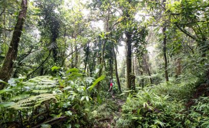 Raph lässt uns am Ende der letzten Straße bereits viele Höhenmeter über dem Meer aussteigen und nach ein paar Schritten befinden wir uns bereits mitten im Grün des Regelwalds. Nebelschwaden der fast permanenten Wolkendecke umhüllen den Wald und wir setzen bedacht die ersten Schritte über Wurzelgeflecht und matschigen Waldboden. Wir sind erstaunt wie rasch sich alles wie gewohnt anfühlt und wir genießen es, die energieerfüllte Luft und die Atmosphäre des Dschungels zu atmen. Auf halbem Weg nehmen wir ein erfrischendes Bad in einem wunderbaren Naturpool unter einem kleinen Wasserfall, um anschließend den Aufstieg zur Hütte in Angriff zu nehmen. Wir haben die Hütte, so wie auch den Trail, ganz für uns alleine und wir richten uns ein für die Nacht. Wir genießen die exklusive Zweisamkeit hier oben, eine Zeit zum gemeinsamen Reflektieren und Austauschen – wie gut uns das immer wieder tut!